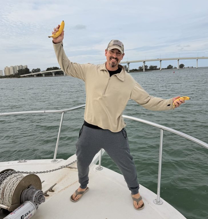 Now, onto the banana adage. The “no banana” rule started when I was a kid, fishing with my best friend, AKA Uncle Dominic. We were having a grand old time in the Florida Keys when Dominic saw a No Bananas sticker on a passing boat. From that moment on, we made that a rule in our fishing expeditions and even expanded upon it, adding a clause to the rule penned the “No Bananas Dance”, requiring all people who brought bananas on our fishing trips to shake their money maker in order to ward off the bad juju. It was hilarious. I saw no reason not to continue this amusing tradition on our charters to give us the best chance of catching fish while enjoying a good laugh. Unfortunately, one day, one of our performers took a spill while dropping it low…that was the end of that era for 2 Shea Charters (though legend has it Uncle Dominic still enforces the rule on his boat, so if you are thinking of bringing a banana in his sight, get your Truffle Shuffle ready to go!).