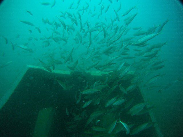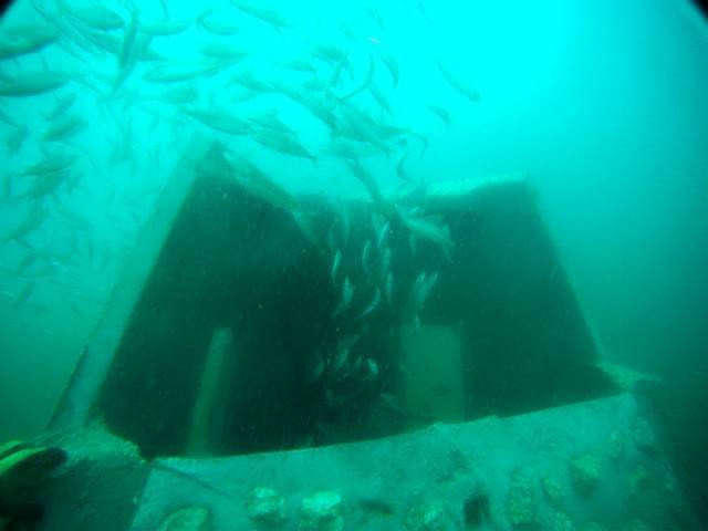 The Lee E. Harris site is well known for producing large schools of baitfish. Baitfish are an important component of St. Lucie County artificial reefs in that they provide forage for other fish to grow. Baitfish are also used by anglers in targeting larger fishes. At least five species of schooling baitfish have been detected on this site including goggle eyes, blue runners, and cigar minnows. Photographs from the memorial reef show large schools of baitfish already inhabiting these modules one week after their deployment.