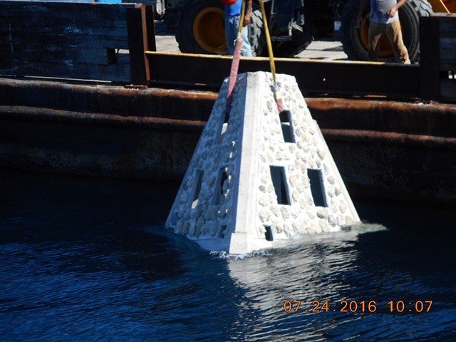 The St. Lucie County Artificial Reef Program provided additional recreational opportunities for watermen this summer. McCulley Marine Services deployed one additional 1,500-ton secondary concrete reef as well as 25 locally-produced limestone special artificial reef modules on the Lee E. Harris Memorial Site off shore North Hutchinson Island.