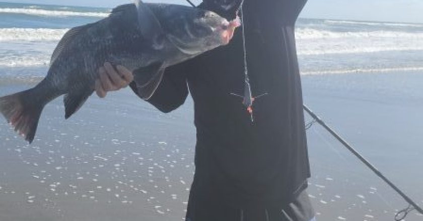 11 years old Isaac Duncan hooks first Snook in St. Augustine Inlet
