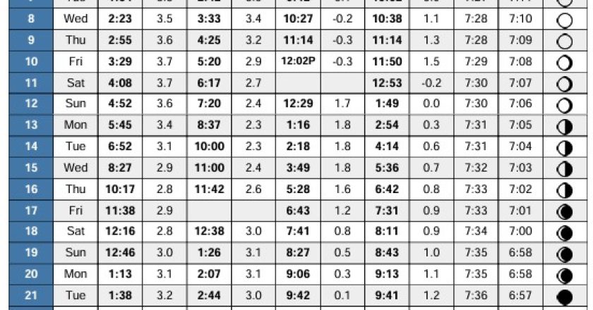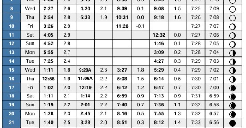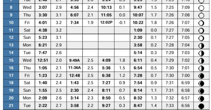 Tampa Bay Tide TablesTarpon Springs/Anclote River Tide Table October 2025Tampa Bay Edition5 days agoSeptember 24, 2025 Comments Off on Tarpon Springs/Anclote River Tide Table October 2025