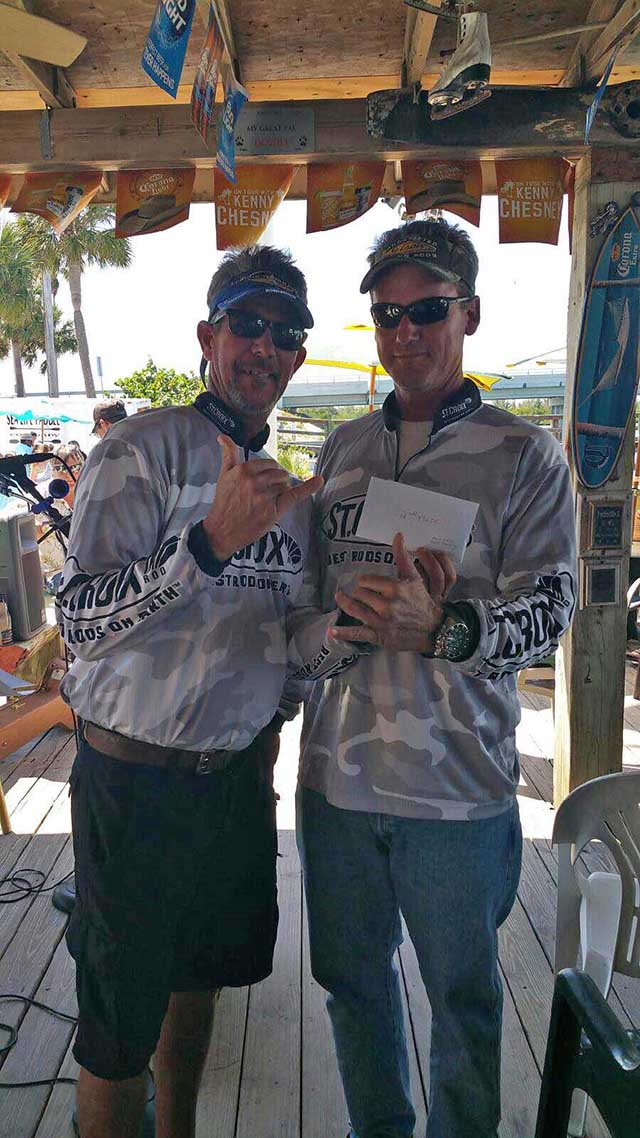 Josh Partin and Donnie Gribble, of Vero Beach, won the event and $402.50 for catching the biggest inshore slam in Backcounty Fishing Association history: a 5.37-pound redfish, a 2.59-pound trout, and a 9.25-pound snook for a combined weight of 17.21 pounds. Mark Dravo and Mark Browning, of Fort Pierce, placed second and earned $241.50 for their 5.51-pound redfish and 2.84-pound trout. Eddie Hess, of Fort Pierce, and Glenn Kusmerz, of West Palm Beach, took third and a cash prize of $161.00 for a 4.4-pound redfish and a 3.99-pound trout.