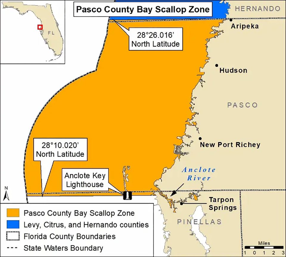 Pasco Zone: July 10 through August 18. This region includes all state waters south of the Hernando – Pasco County line and north of Anclote Key Lighthouse in northern Pinellas County, and includes all waters of the Anclote River.