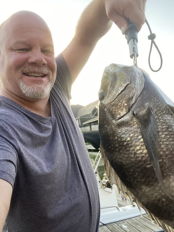 I caught this 6 lbs , about 18 inches Sheep head in the canal in Marina Del Sol behind the house.