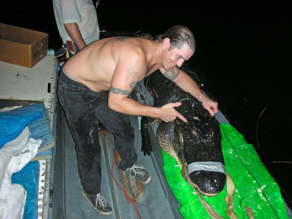 My son with a gator we caught in the Suwannee