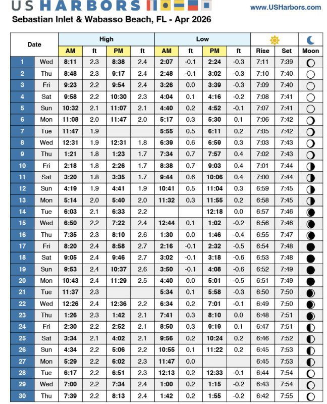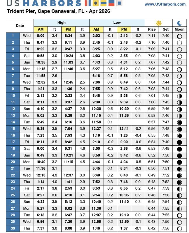 Sebastian Inlet to Eau Gallie Cswy. – April 2026Port Canaveral Offshore – April 2026Sebastian Inlet to Eau Gallie Cswy. – March 2026Port Canaveral Offshore – March 2026First keeper snookFishing Reports!Port Canaveral Offshore – April 2026Editorial StaffPort Canaveral & Banana River – April 2026Editorial StaffSebastian Inlet to Eau Gallie Cswy. – April 2026Editorial StaffSpace Coast Surf Fishing Forecast – April 2026Editorial StaffArticlesSebastian Inlet to Eau Gallie Cswy. – February 2026Editorial StaffSebastian Inlet to Eau Gallie Cswy. – January 2026Editorial StaffPort Canaveral Offshore – February 2026Editorial StaffSebastian Inlet to Eau Gallie Cswy. – December 2025Editorial StaffPort Canaveral Offshore – December 2025Editorial StaffSebastian Inlet to Eau Gallie Cswy. – November 2025Editorial Staff View More ArticlesBrevard Edition View/Download PDFBrevard Tide Charts March Madness on Mega-Reds at Merritt Island, FL’s mangrove roots using mullet.Bragging BoardTarpon in the mangrovesRedfish11' Tiger SharkMarch Madness on Mega-Reds at Merritt Island, FL’s mangrove roots using mullet.Indian River Red, TitusvilleRedfish Titusville Indian river View More PhotosFollow Us On Facebook