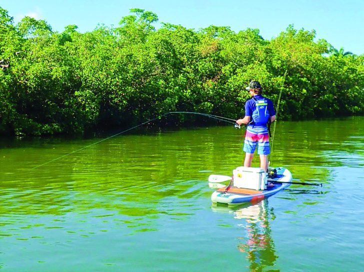 Salty Sam’s Marina is located on the southeast end of San Carlos Island. A short paddle around this side of the island places you at the west side of the mangrove maze that leads to Hell Peckney Bay. The tunnels open into small flats accessible only to paddlecraft or the smallest jon boats. Many a paddler has gotten turned around in here, so I can assure you that the Calusa Blueway markers are very reassuring once you discover them.