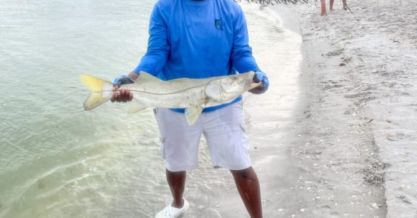 EditionOctober 31, 2025, 11:13 AMOctober 31, 2025 Comments Off on Richard Conage caught this 37” snook at Blind Pass 15 Spider Wire w/ a 30# leader and pinfish for bait.