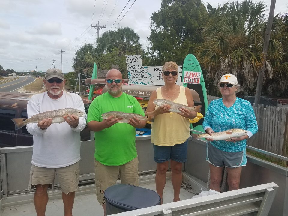 Wow, this year is absolutely flying by!  As predicted, we just came off of one of the best redfish bites I have seen in years.  All of those hundreds of under-slot reds are now of legal size, and there are a lot of them.  I have had multiple 4-hour charters, where we have landed 20 and 30 inch-slot reds.  Very exciting! Most of them were caught with the live pin fish and set up that I talked about last month.  It is November, and we should start seeing a stronger trout bite now, or if not, soon.  I usually have my best success using a B52 popper.  They are heavy, which lets you cast them farther.  They are loud, also which helps attract the trout to your bait.  Don’t wimp out on popping these.  Make them splash! Attached to the popper, I use 20-pound test floracarbon, and the length depends on the depth of the grass flat I am working.  I am usually around three feet in length, so the bait dances just above the grass.  I love DOA plastics because they are a lot tougher then some of the more advertised brands.  I can land quite a few fish without burning through a lot of baits and money.  Chartreuse/pearl 3 in shad and the electric chicken are two of my favorites.  I hope this helps, and if you have any questions, please do not hesitate to stop by the shop, call, text, or email.  We are here to help.  Get those kids fishing!