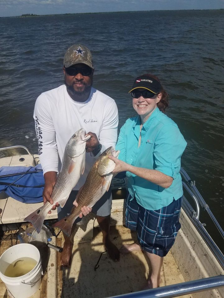 Hallelujah, we survived another year! Water temperatures are dropping, and pushing our redfish into the creeks. I recommend two options, to get to the redfish. The first is by kayak, but please make sure that you have a high-flying flag so you can be seen over the marsh grasses by the airboat folks who cannot hear you or see you. The other way to get in there, you guessed it, by airboat. Once you find your way to the deeper holes in the creek, you can usually have a field day with the redfish by simply fishing a live shrimp or different types of tackle and bait. When you find them, they’re usually not alone, and you can catch multiple reds out of each hole. Other than that, sheepshead are definitely coming in. If you can find fiddler crabs, they is a great bait to catch sheepshead. Another good bait is an oyster, if you can keep it on your hook. Make sure you have a very fine and sensitive tipped fishing pole, as most of us already know that fish barely move the rod when eating the bait. Typically, anywhere we have structure or dock poles in deeper spots, the sheepshead are there. Also, this time of year, you usually can find some very nice in-slot trout. We are still in love with the B-52 popper and live shrimp or multiple different colors of DOA Shad Plastics. I hope this helps. I hope to see you out on the water. Please make sure you get these kids out there fishing.