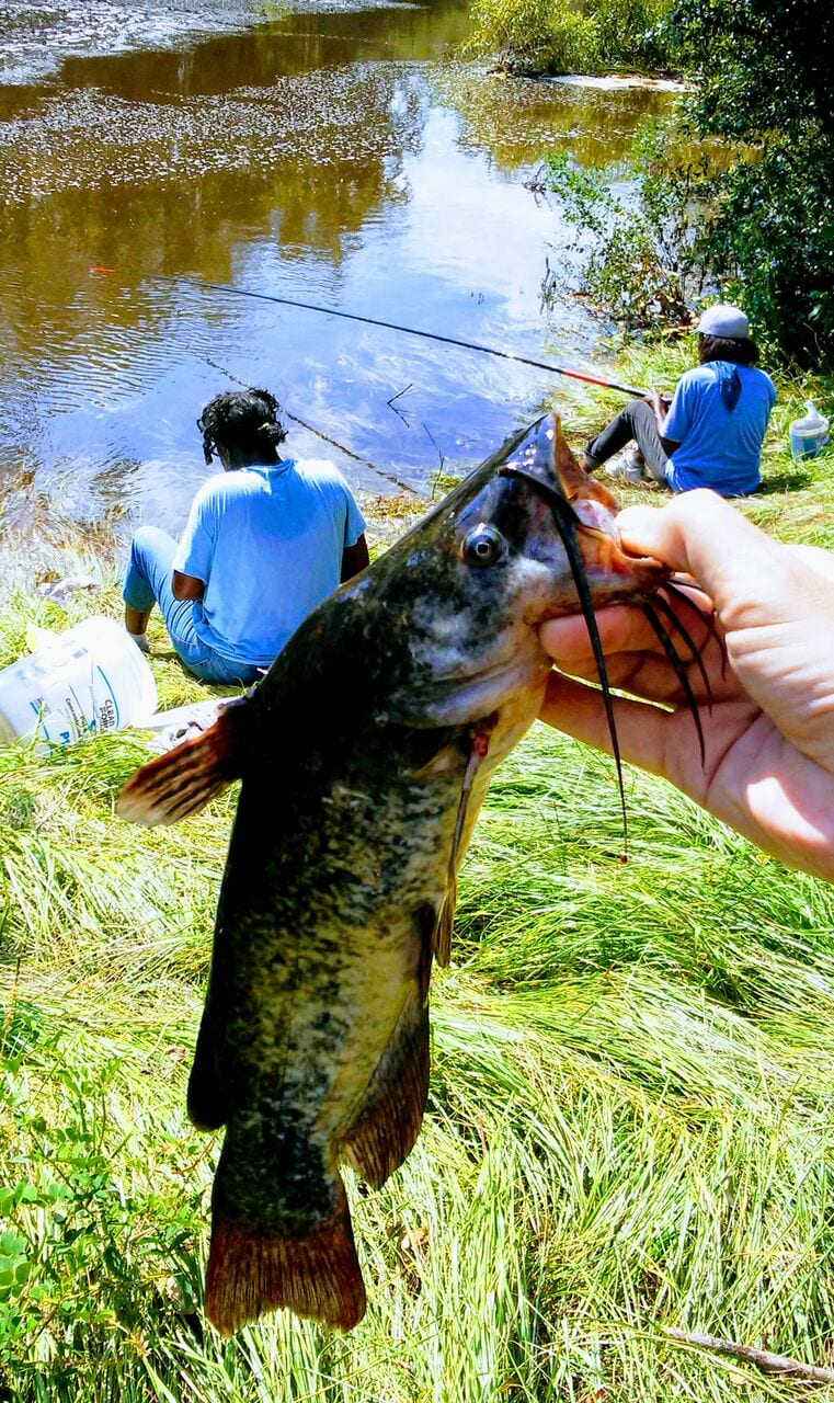 Fried catfish is delicious, and the dams at Rodman and Moss Bluff are producing some heavy stringers! Recently, Moss Bluff Dam was flowing like white water rapids, due to heavy rains. The water’s edge actually came all the way up to the parking lot. Everyone I spoke with said it was the best fishing they’d seen in years…coolers full! The rule of thumb is: More flow = More fish! Cane poles were most people’s weapon of choice, and live worms were their bait.