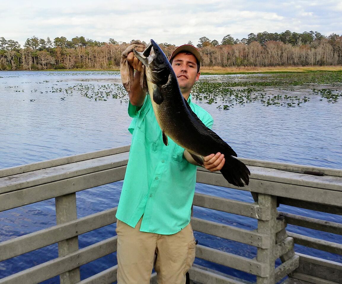 Hybrid striped bass are one of the most fun and best eating fish of the forest. Rodman Dam and the St. John’s River have always been the go-to spots, but Lake Bryant is starting to prove itself as a worthy competitor. Small shiners or minnows are the preferred bait, and beetle spins or crappie jigs are the preferred lures. Stripers usually school up 100 yards or so from the water’s edge of Bryant in 6 to10 feet of water. One pounders are common, but many people have reported catching 3 to 5 pounders recently.