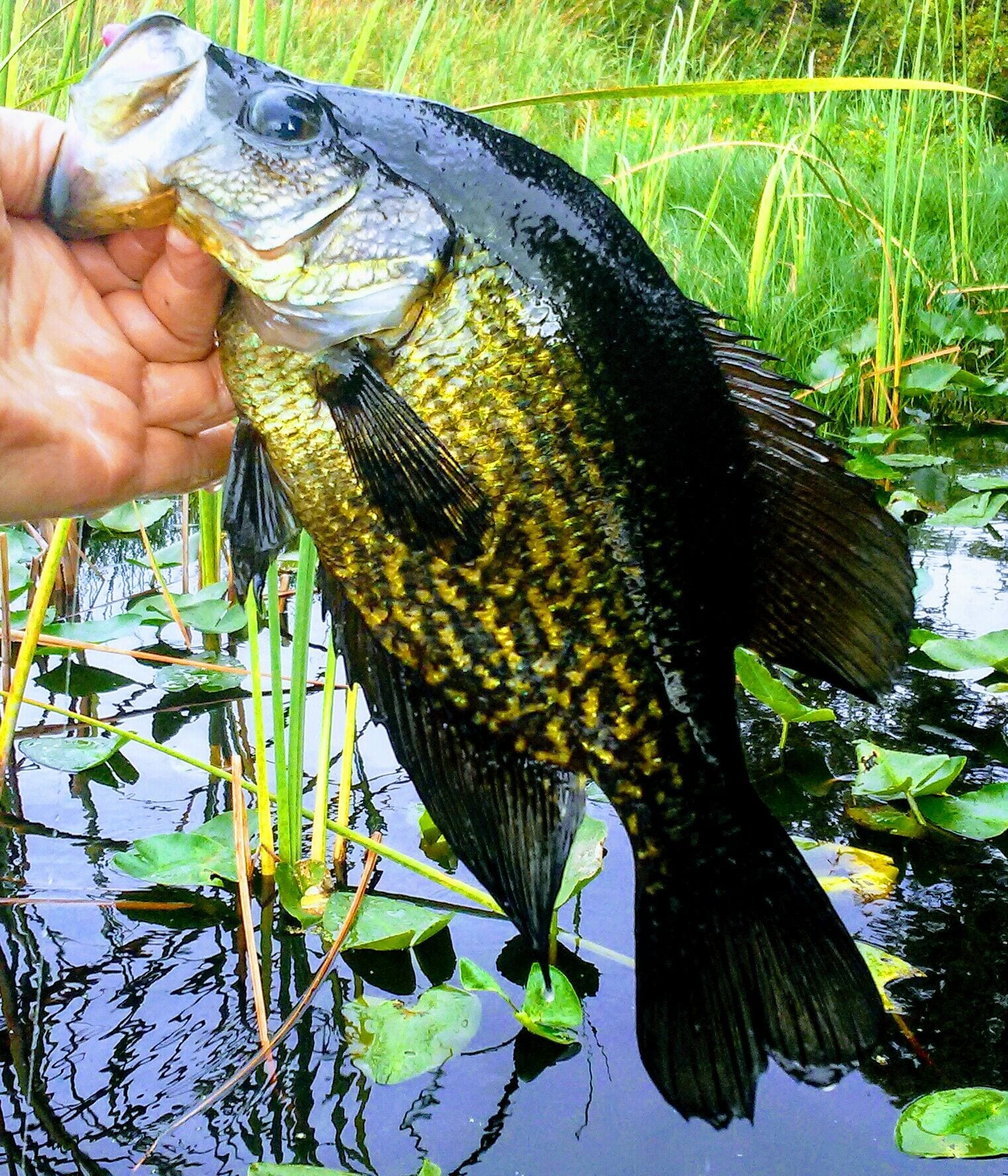 While fishing for crappie, you’ll catch all the other freshwater species as a bi-catch. Largemouth bass are common, as well as catfish and sunfish. Note: I’ve seen some interesting patterns on bass lately; which tells me that our lakes have other (rare) genetics swimming around in them.