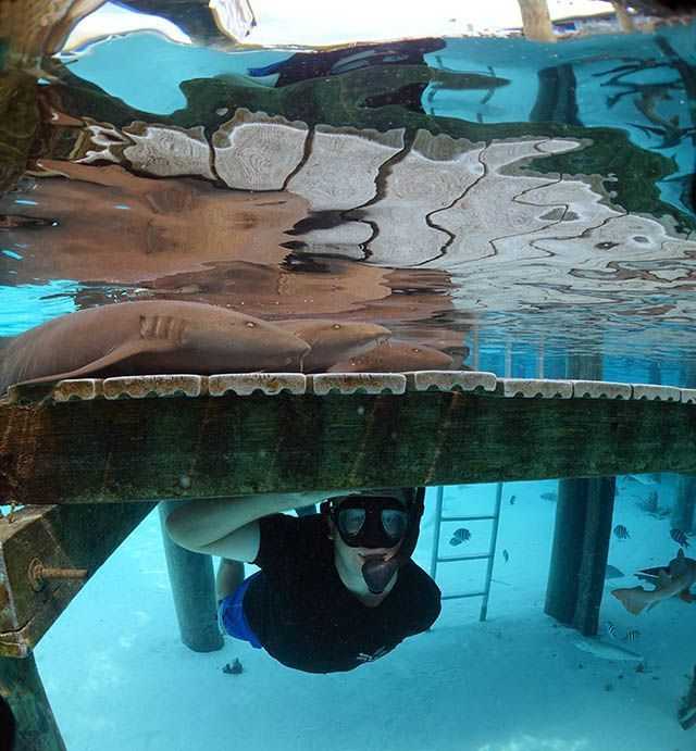 After hanging on the platform for a little bit we jumped in for a snorkel. The water in the marina is crystal clear and it is like being in an aquarium. The sharks swim around along with bonefish and snapper. This is an ideal place to introduce anyone young and old to the beauty of these often misunderstood creatures.