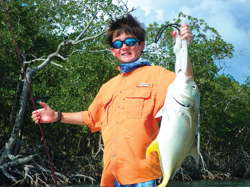 As some trips go, our week was full of 20-knot winds and scattered sun and showers. It was just another day at the office for our guides. Their pangas are equipped with bimini tops, and set up to carry four anglers. This left plenty of bow space to fish two anglers at a time. From trolling the deep flats for Spanish mackerel and kingfish, to live bait fishing for drag screaming barracudas, all techniques produced fish. Our favorite game was tossing cut bait at the mangrove island shorelines and getting smashed by the unknown. Some smashes ended in victory and others ending with us wishing we had bigger gear. Those jokers are hard to pull out of the mangroves. It was a perfect kid fishing adventure, numerous hook-ups and days of excitement!