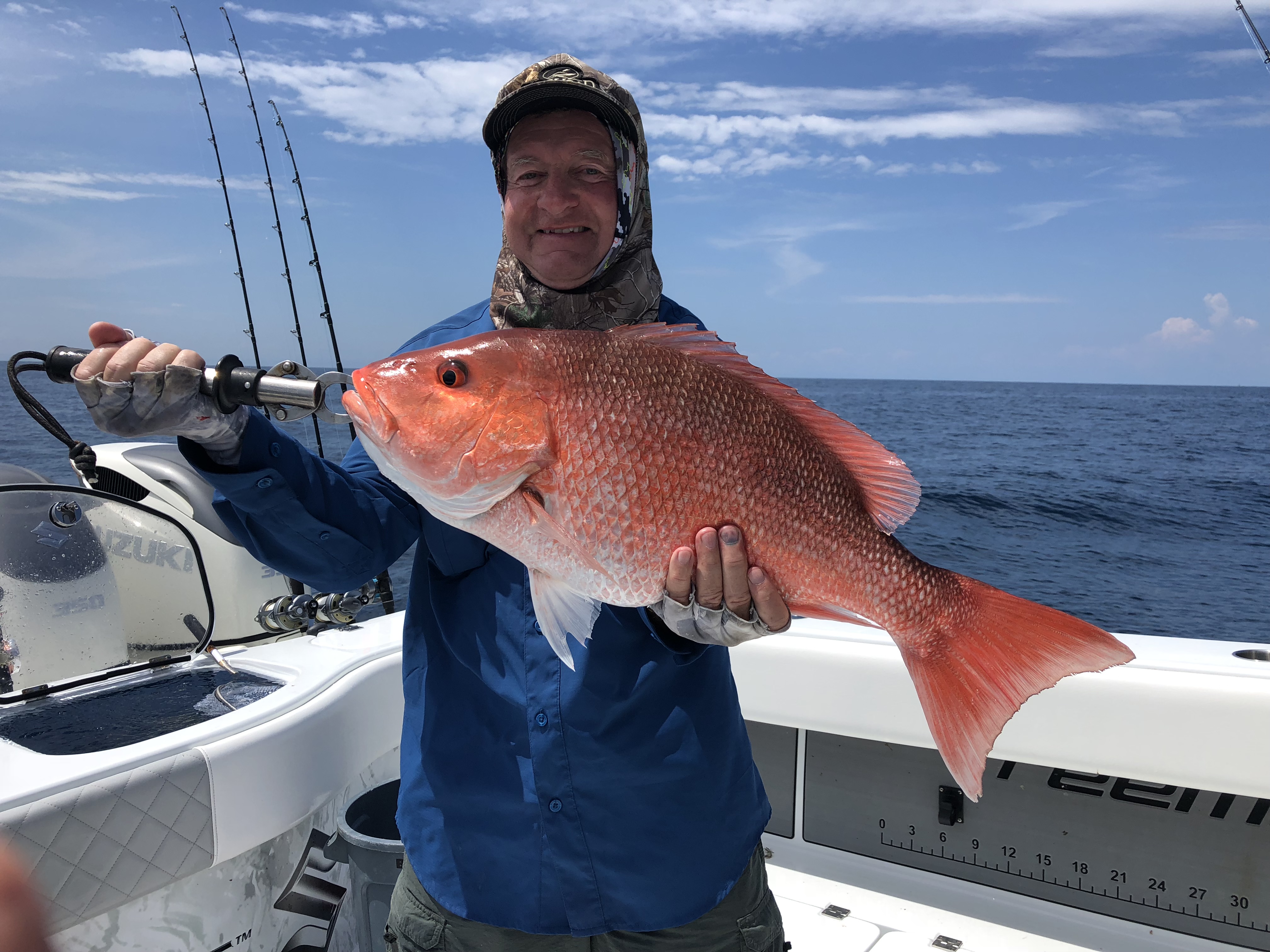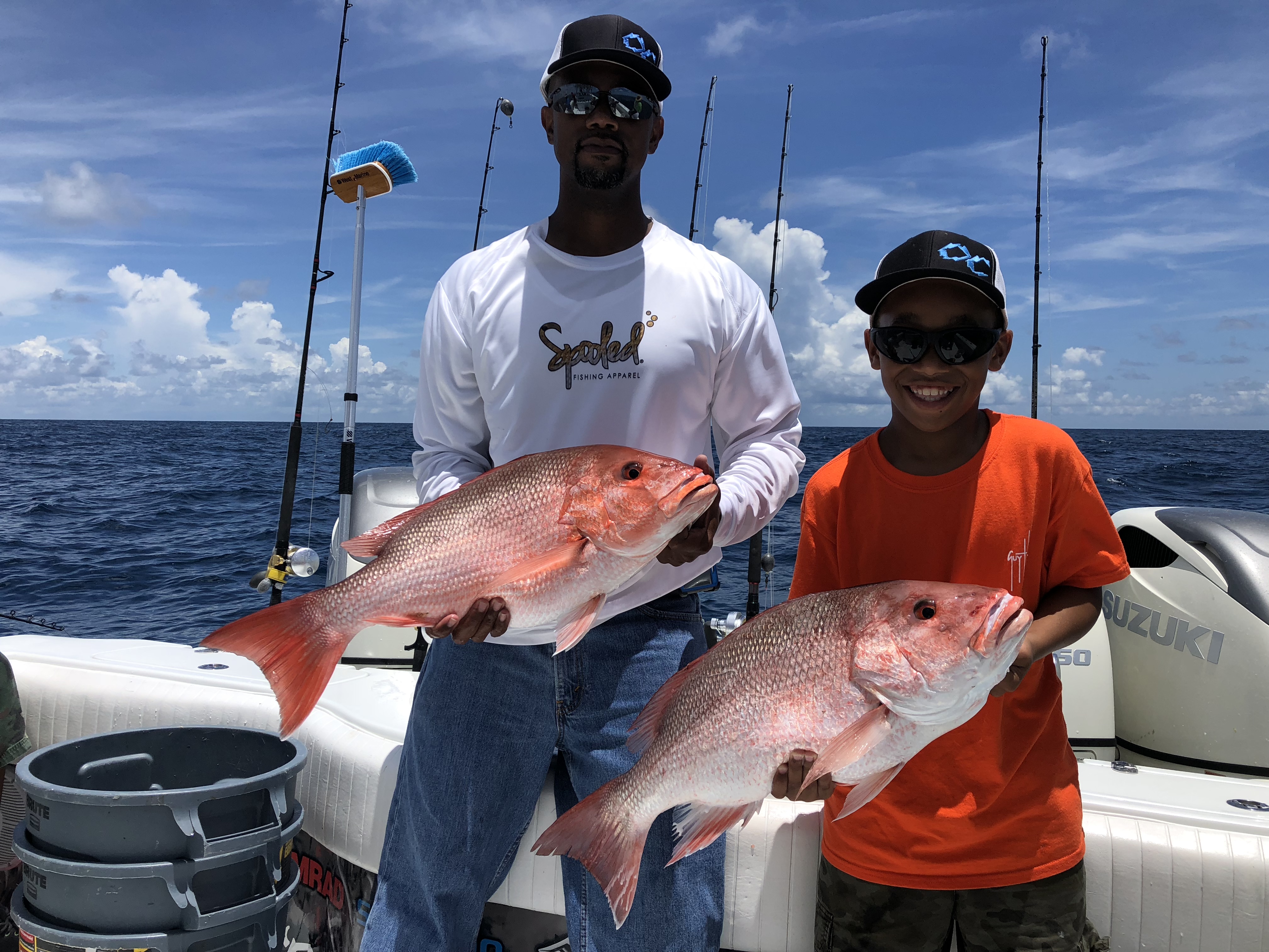 Red snapper are very similar to gag grouper, in the fact that they frequent the same rock piles and ledges, but in our area, you are going to want to look a little further offshore, in depths ranging from 50 to 80 feet of water. The snapper are much less likely to try and break you off in the structure, so we will typically downsize to smaller weight, such as 6 oz. lead and 50 lb. leader, terminated with a 6/0 hook. Our bait of choice is usually a small live pinfish, or a half of a frozen thread fin herring.