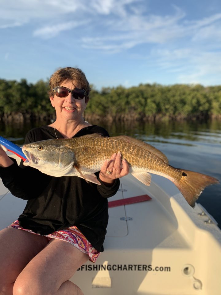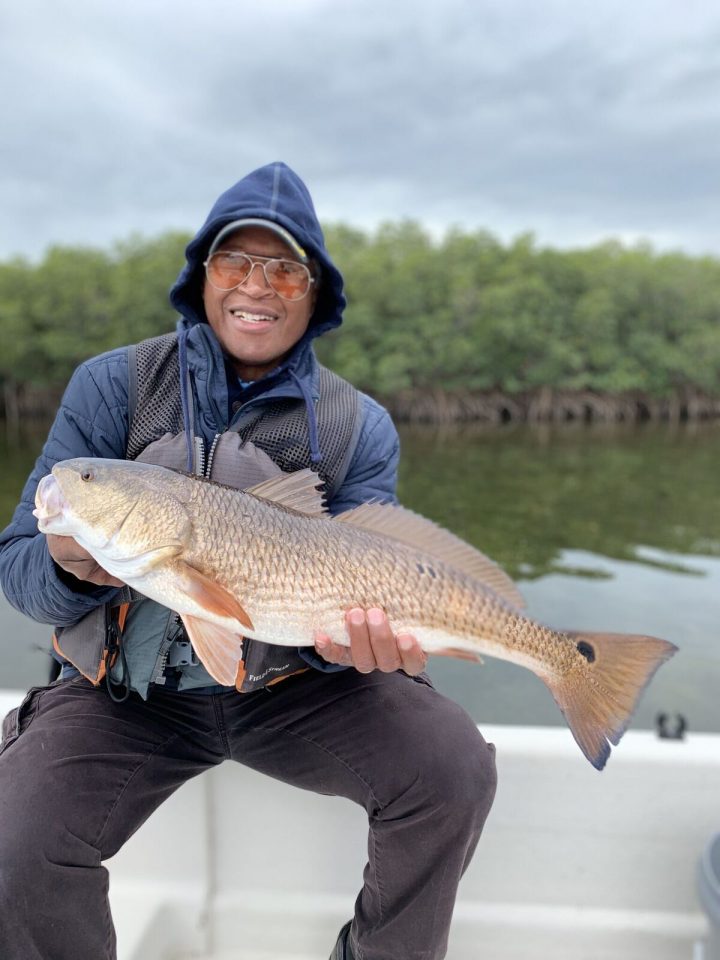 The reds have been awesome!  While targeting them, I look for bait on the islands and creeks, and I like to fish the beginning of the incoming tide, and follow the tide to stay in shallow water. Another good tactic to catching reds, is sight fishing. I like a slower incoming tide, and really take my time trolling and looking for fish. It can be very productive. For tackle, I’ll use 1/16 jig tipped with a fresh live shrimp or even gulp a shrimp. Live pins are also a good bait.
