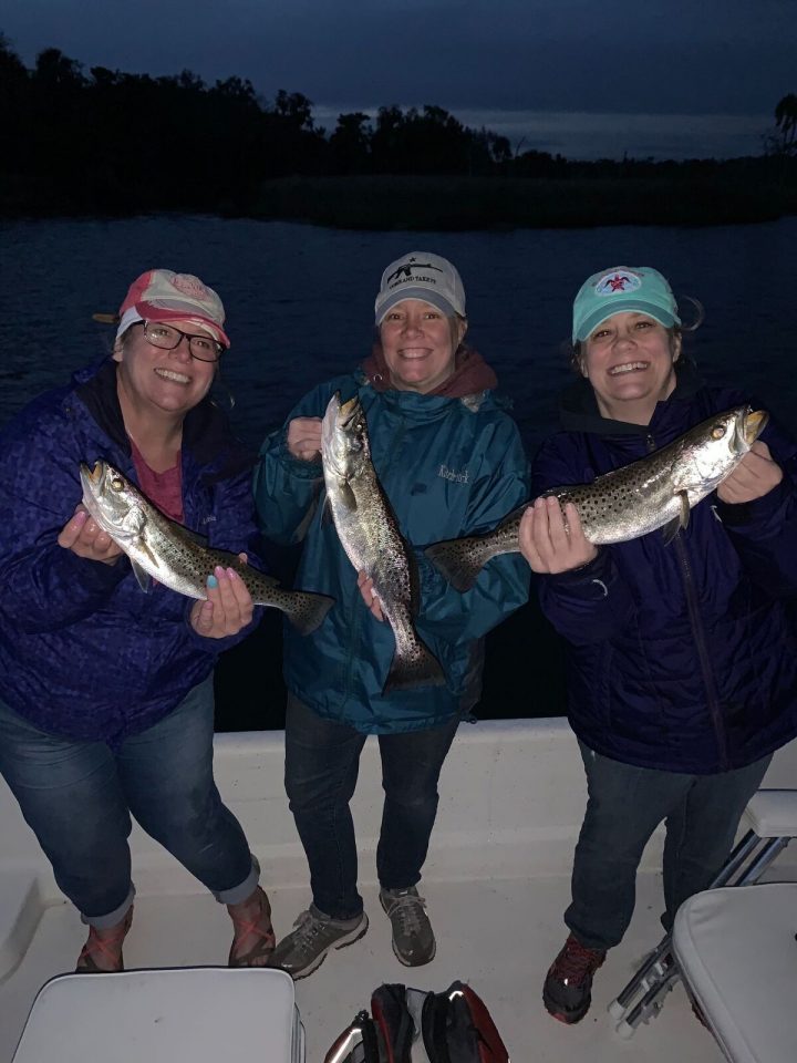 This time of year, the trout fishing is really good. With the warmer weather, the trout who moved into the creeks and the shallow water trying to stay warm, have moved out. When targeting them, I look for baitfish and hard bottom with rock grass. Also, I like to fish the lower tide; it seems to concentrate the fish. I’ll use hard baits mirrordines and jerk baits.