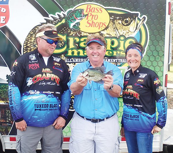 Crappie Masters (www.crappiemasters.net) holds 18 to 20 tournaments a year. Around those tournaments, they film 12 television shows. The shows are a mixture of information on the destination, tips and techniques to catch crappie, and tournament footage. Newsome videotaped Vallentine and I as we tried to demonstrate a technique called dipping. Using 10-foot-long rods we dropped crappie jigs into little holes among the lily pads, jiggled them a few times and then moved to the next hole. Vallentine explained this was not necessarily the technique to load up a cooler full of crappie, but it could be a good way to catch a few really big fish. “Could” was the key word for our morning of fishing. We dipped and dipped and dipped our way along hundreds of yards of the prettiest, fishiest lily pads you ever saw. Everybody but the fish knew they should’ve been there. Finally, I got our lone bite, a hand sized crappie that fell off the hook before I got it in the boat.