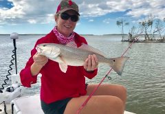Geri Hanson with a redfish while fishing with Captain Brandon Acosta of Everglades City Fishing Charters