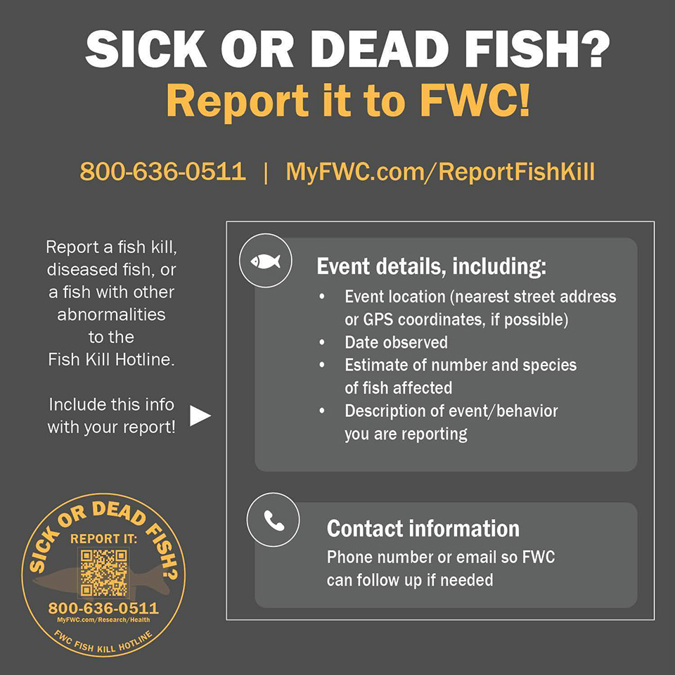 Many fish were found concentrated in corners, near structure, or floating along shorelines — a common pattern during Florida fish kills caused by cold weather.
