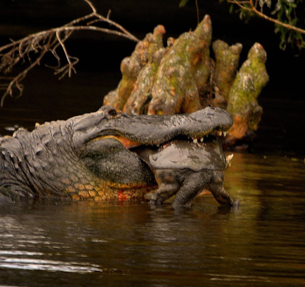 A large softshell turtle caught by a gator