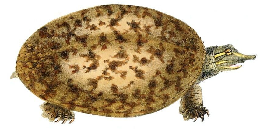 A lithograph of a softshell turtle