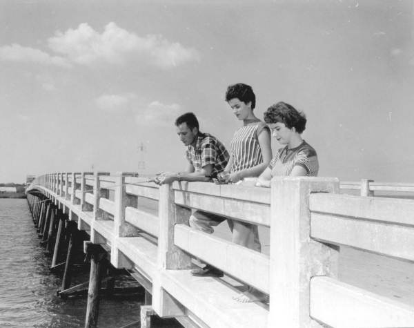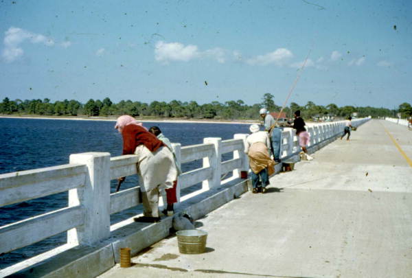These bridges are so good at attracting fish because of the pylons and concrete foundations that offer hiding places and sources of food to many species of fish. A difficult part of such fishing is getting the hooked fish away from the structures below the surface of the water. Local fishing tackle stores can give good advice to newbies on what kind of tackle to use and how to take advantage of the tidal currents, different depths, and varying kinds of below-water structures at the bridges and causeways. Local fishing-tackle stores even rent rods to newcomers, as well as selling frozen and live bait.
