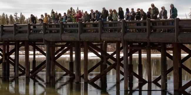 Yellowstone National Park has an official “Fishing Bridge,” although – with the decline of the cutthroat trout population – the bridge is closed to fishing, but open for those who want to observe fish in the river below. The Fishing Bridge used to be very popular with fishermen, especially because cutthroat trout used to spawn in the waters there. However, because of the decline of the cutthroat population (in part, a result of this practice), the bridge was closed to fishing in 1973. Since that time, it has become a popular place to observe fish.