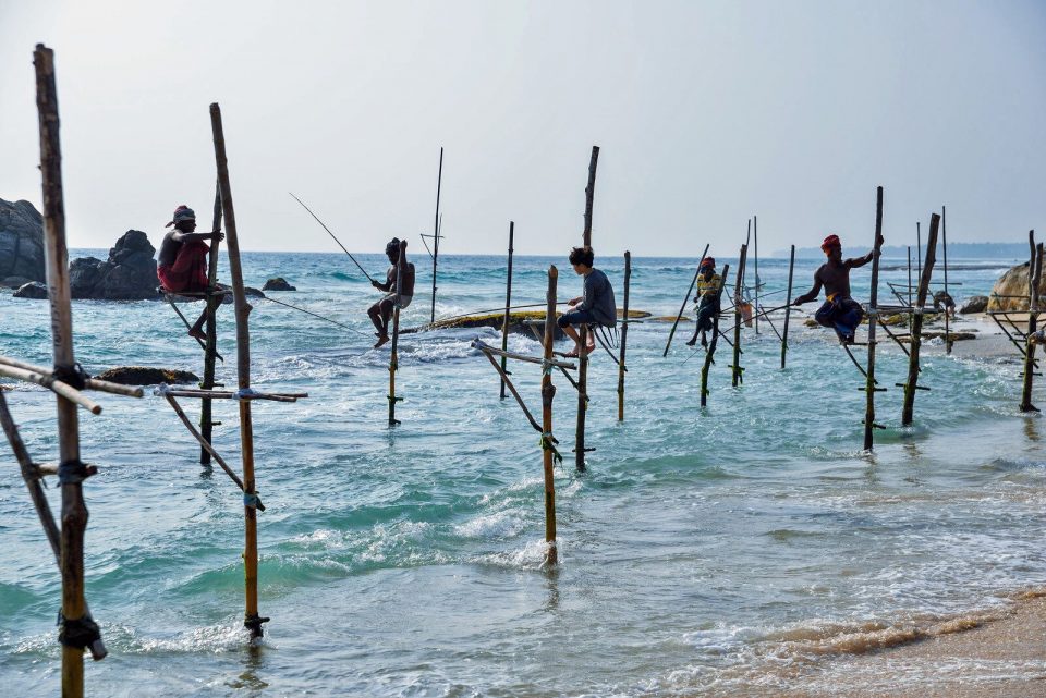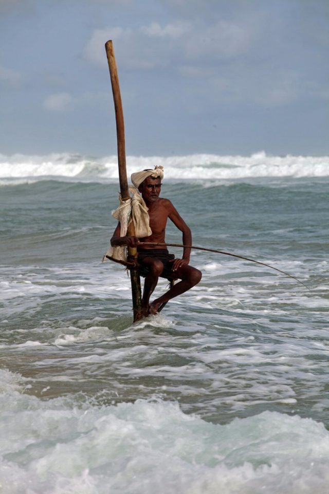 The fishermen will drop lines into the shallow water or spear passing mackerel and deposit their catch into a bag tied to their waist or the pole itself. They might even use a throw net to catch herring. They usually fish around sunrise and again at dusk. The safest place for such fishing is close to shore, and even in enclosed lagoons safe from the crashing waves. The fishermen often like to explain to visitors how they catch fish and maybe even let a daring person try it out.