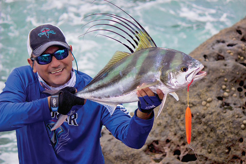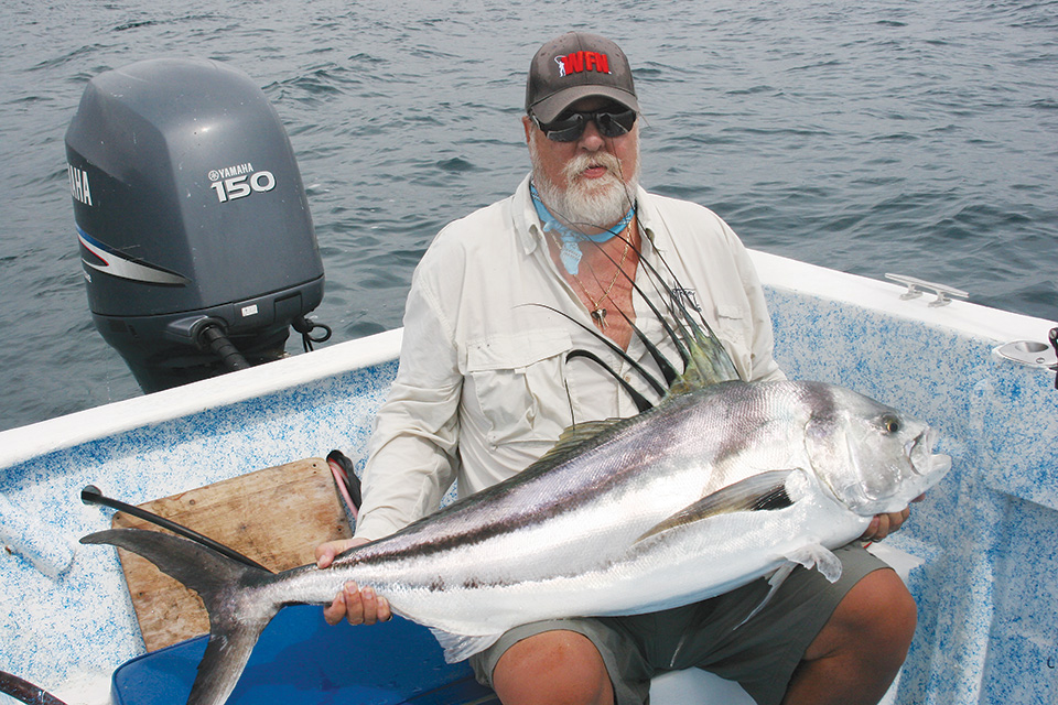 This odd looking fish is found from the southern Baja to Ecuador where it almost always hugs the shoreline from a few feet to 500 yards offshore. They feed on bait fish, mainly mullet and sardines, but I think their favorite is the lady fish. The rooster prefers water temperatures of 80 F and higher, at least the monsters do. The average fish caught is about 10 to 35 lbs. Anything over 50 lbs is a real trophy. The world record right now is 114 lbs from Baja Mexico.