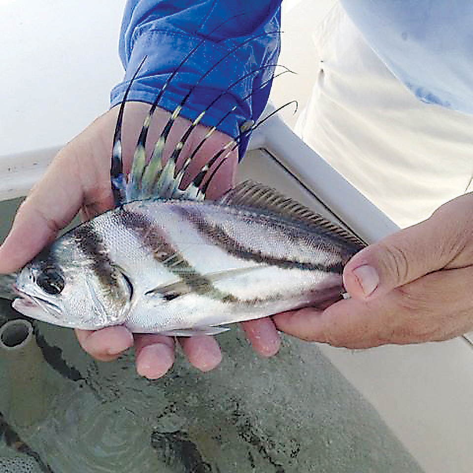 One of my favorite fish of all is the exotic rooster fish. Let me tell you something about this awesome fish. It has a dorsal fin that looks like the tail feathers of a rooster thus giving it the name rooster fish. This unique fish is a member of the jack family and fights as hard as they all do. However, the rooster doesn’t make good table fare. It’s just a great fighting game fish that should always be released.