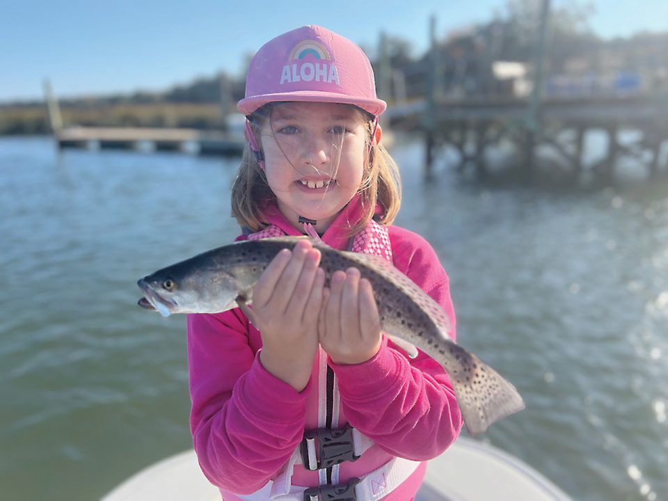 When the ocean doesn’t allow it, I find myself fishing the creeks for trout and redfish. Depending on what the tide has to offer the day of, I could find myself trout fishing on higher water or redfishing at low tide. One of my favorite ways to target redfish is topwater plugs. This is a lowlight condition fishery so early mornings or late evenings are a must. A lowtide around 8-9am allows me to get to the spot at sunrise and have a couple hours of an outgoing tide to target the reds as they come out of the marsh grass. It also allows a little bit more depth of water so they aren’t extremely spooky. I love throwing a Heddon topwater plug in silver mullet color. I switch the treble hooks to in-line J hooks for better quality, and easier to get out of the fish while maintaining a great hook-up ratio. Trout will also eat these baits too! If I’m not throwing topwater I switch over to either micro shrimp patterns like the Z-Man Prawnstar in 2.5’’ or a Z-Man Slim Swimz in 3” on a jig head. Another great bait for large trout is the Mirrodine, made by Mirrolure. It’s a menhaden imitation that slowly sinks and is a great replica of the small pogies that are in our estuaries in the spring.