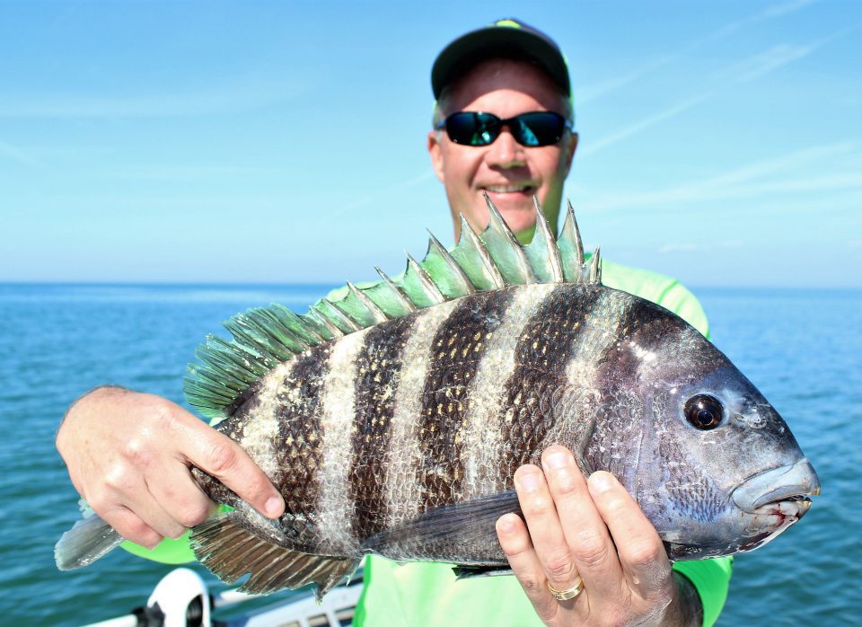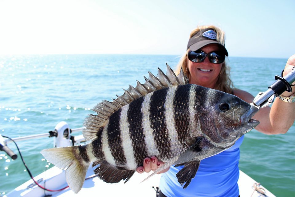 If you haven’t been offshore yet this winter, now is the time to do so. The Sheepshead are in their full spawning pattern, especially around the major moon phases and the action is excellent. The extensive near-shore rock piles, wrecks and reefs where we target grouper, will be holding good numbers of spawning sheepshead. Position yourself up current from the structure your fishing, and drop down a live shrimp rigged on a knocker rig. A knocker rig consists of a sliding ½ oz egg sinker, lying right against a 1/0 short shank live bait hook. Remember, sheepsheads are notorious bait stealers, and if you feel the slightest tap on your line and feel resistance, set the hook.