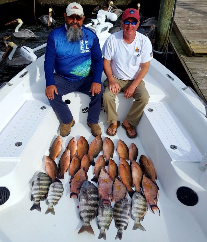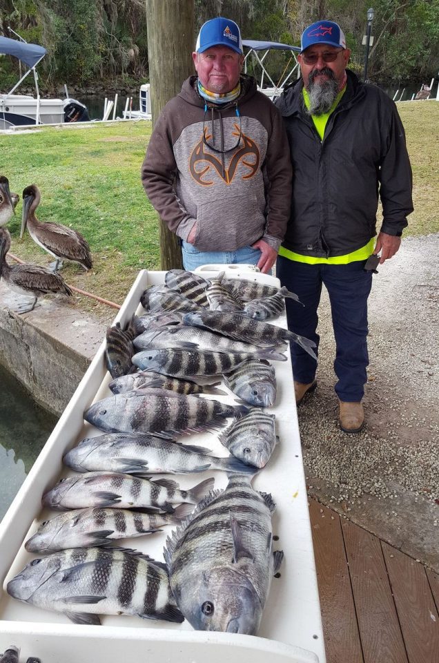 On days when it favorable to run offshore, the sheepshead will be waiting on just about every piece of structure that can grow a barnacle. It seems the colder the water, the better for sheepshead. Rock piles, ledges, channel markers, wrecks and artificial reefs are havens for them. Along with the offshore sheepshead, there’s plenty of action with hogfish, grunts and mangrove snapper too. Bring plenty of shrimp and you’ll have a blast.