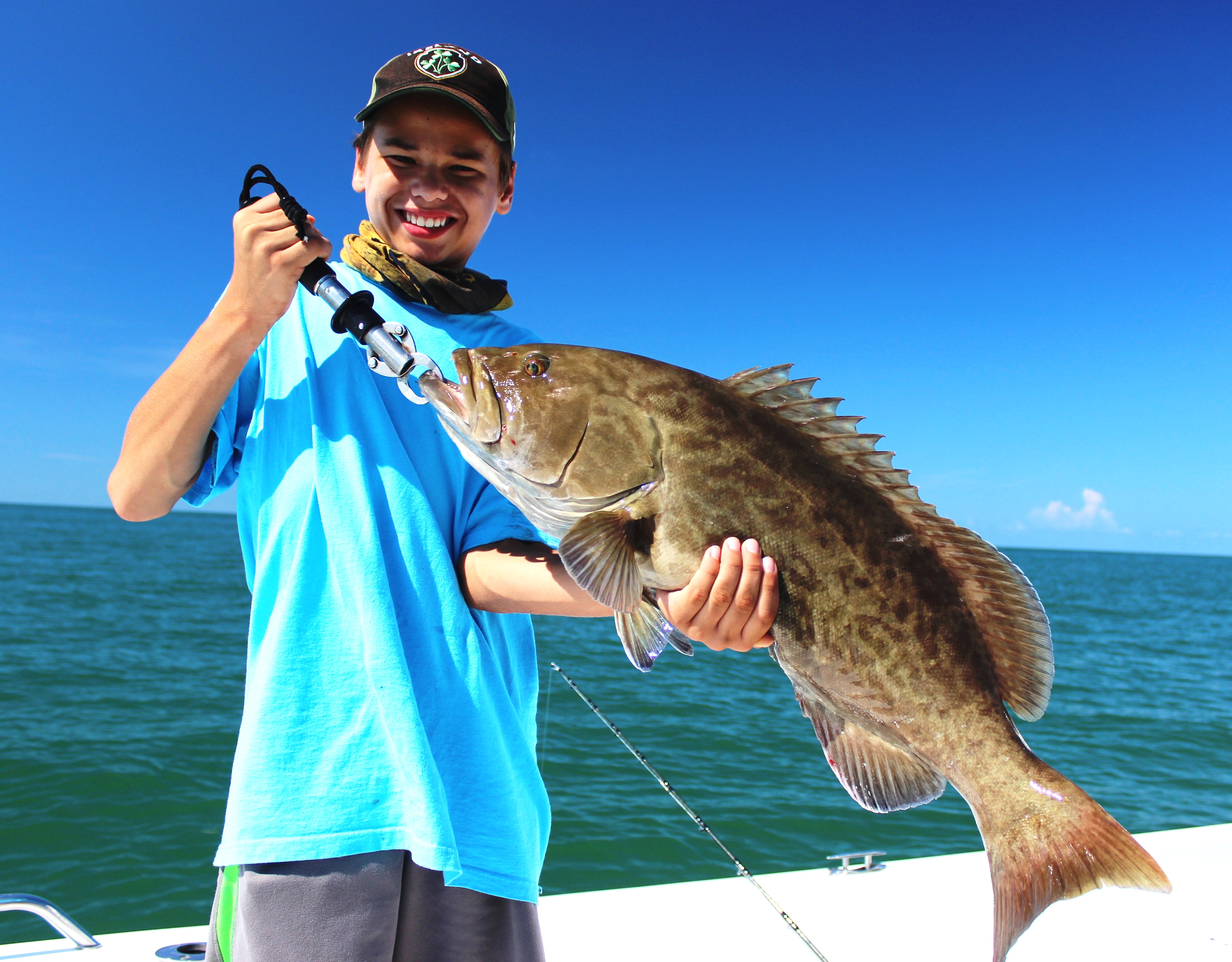 Depending on the floating grass, this time of year is ideal for trolling large lipped plugs over your favorite grouper bottom. Experiment with natural and bright colored combinations, to see what flavor the grouper are wanting. For the bottom fisherman, always start the bite with frozen sardines or threadfin herring, and then send down that frisky live pinfish and “hold on”.