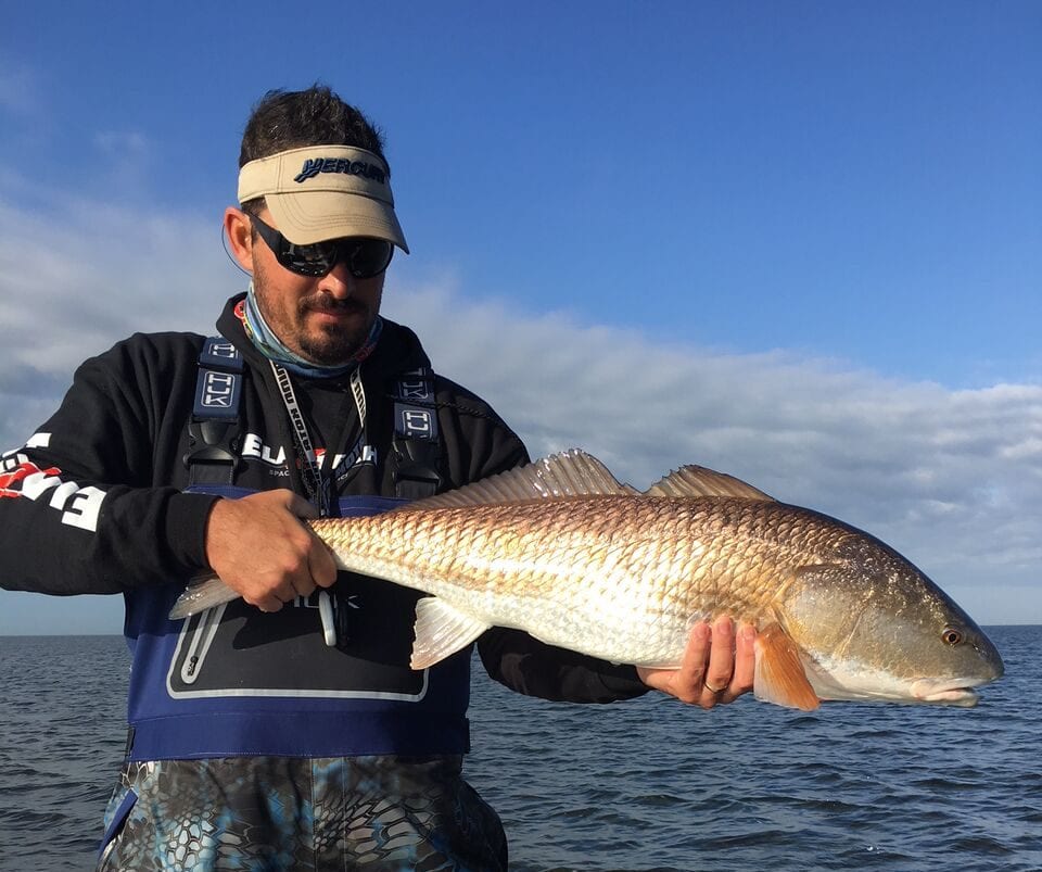 The redfish will be looking for a particular water depth. The water temp will stay more consistent in certain areas and that were they will stay. Once you can figure out that depth all you need to do is see what they want to eat. This can be a little harder than you think. I have had days were everything I have ever learned has my brain telling me to downsize and move slow or vice versa and the fish want the exact opposite. This pattern will change daily. The one constant is that the redfish and trout will be bunched together and the same pattern usually works for both. One tip that will help you produce more strikes this time of year as well is to downsize your leader material. The crystal clear water will make it tough to throw any bigger leader. I would also use a push pole if you have that option. A trolling motor will end up spooking more fish. If I could only choose one bait for January it would have to be the Paul Brown Devil in chartreuse glow. This is a redfish and trout catching machine. It is a slow suspending walk the dog bait that has always produced big numbers for me in the fall and winter.