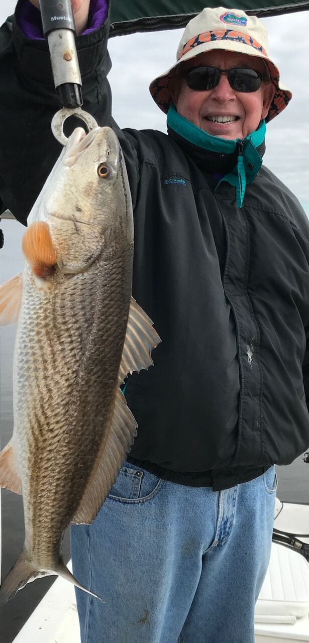 For the last couple weeks, that is how my charters were getting nice catches of trout and big reds. On the warming trends, after the cold fronts moved through in January, the trout fishing was on fire here in Horseshoe. We all know that during the winter months, it is hard to get live bait, and with that said, I would like to take the opportunity to let you know about some of my favorite soft plastic baits. It is Stinky Fingers Bait Co.’s sponge Baits. The past December and January here, at Up-the-limit, we have been blistering big trout and reds in the Big Bend waters. We had several limited-out days and a few of those days we ended up with several 4 to 5-pound trout and top-of-the-slot reds. Almost all were caught using stinky fingers baits. The not so well known secret, is the that bait has a sponge inside that releases scent as it is pulled through the water, or when a fish strikes. This scent creates a super aggressive recovery strike if the fish missed it, or you happen to be site casting, and got a little too excited and quick on hook-set.