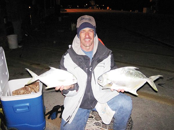 And speaking of the right spot, pompano often school tightly so the right spot can be small indeed. Guys in the sweet spot can haul in pompano as quick as they can get a bait in the water while fishermen fifty feet away can’t scrounge up a single bite. For this reason pompano fishing often means crowds. Pompano experts have an innate sixth sense that allows them to recognize a freshly caught pompano flopping in the cooler from miles away. If you happen to luck into a good pompano bite, expect to be joined by a dozen new “friends” before your second pompano hits the ice.