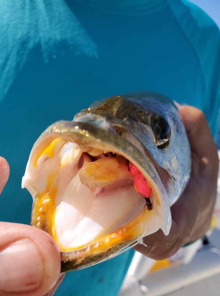 Large trout will be in the neighborhood, but again with the cooling temperatures, slow your presentation way down. When you think you are going slow enough, slow it even more. Shrimp on a jig head from Captains Cove, or a soft plastic like Gulp or Zman will do the trick.
