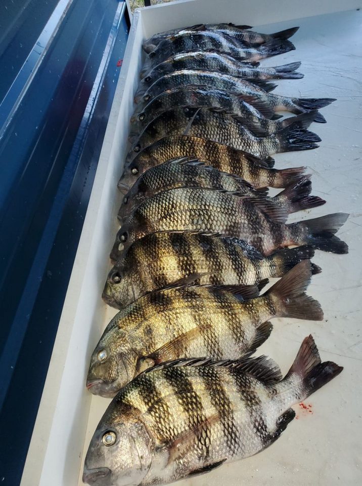 With the gag grouper season now closed, you can turn your nearshore attention to sheepshead. Sheepshead will be heading offshore to spawn. Look for structure, preferably large rocks and rubble. Anchor up and drop, I recommend shrimp on a drop rig. If the shrimp bite is slow, change over to fiddler crabs, this will get them chewing. These fish are spawning, we keep our limit to five per person, so we can continue to have an excellent fishery; I hope you will too.