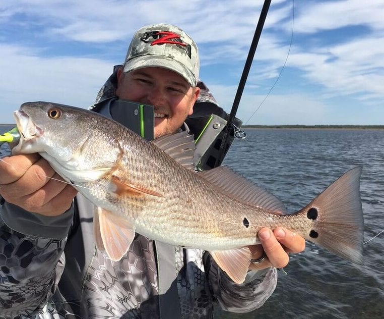 The redfish will look for darker bottom or rock, anything that will hold a little more heat than the surrounding area. It might only be a degree or two, but it will make a big difference. I really like the puzzle this time of year as well. I have had days where the fish wanted a fast-moving bait, and days where you had to crawl a bait on the bottom to get a bite. If I could only choose one bait for January, it would be the Paul Brown Devil in chartreuse glow. This is a redfish and trout killer. The slow suspended walk-the-dog action has always produced big numbers for me. Most of your strikes on this bait will come on the pause. If the fish are not reacting very well to the Paul Brown, switch over to a mirrolure mirrodine. It is a smaller profile bait and you can vary your retrieve speed to get the fish to strike.
