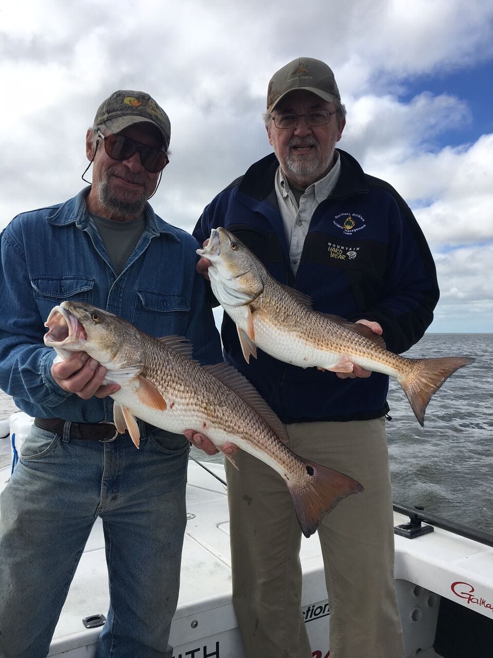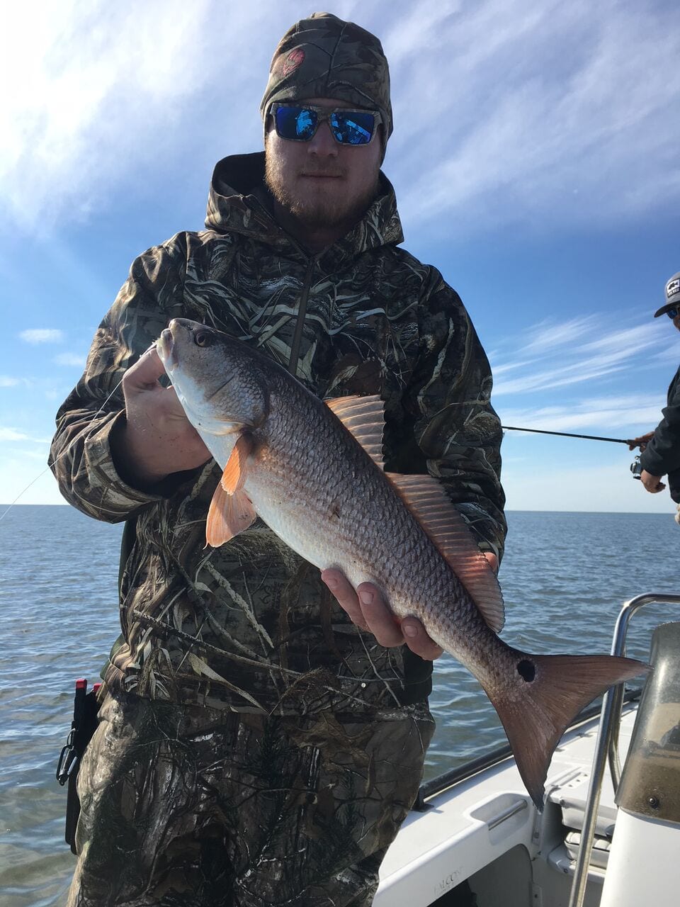 The trout will also be sucked in tight. I like to pick up a mirrolure mirrodine or Paul Brown for them. You want some with a little slower presentation with the colder water temps. I will key in on potholes or drop-offs around oyster bars where they congregate. Live shrimp is also a go-to if they are being stingy and not eating artificial baits.