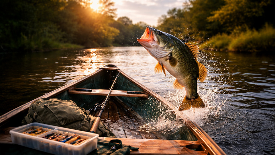 At one point, the canoe careened into a floating limb right next to the bank, and suddenly the water exploded! I caught only a blur of a fish leaping out of the water next to the canoe, and the next thing I knew, it had landed in the boat at my feet! This was no ordinary fish either — it was a 7.5-lb. bass!