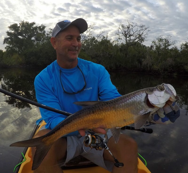 Casting these small lures can be a challenge if you are not using the right tackle. Most backwater tarpon are under ten pounds and are perfect targets for light tackle. Last year I had a blast catching tarpon on ultralight spinning tackle spooled with six pound test Platypus P8 Braid. To the end of the line I attached a couple feet of twenty pound test Platypus Stealth fluorocarbon leader. With this setup I can get all the casting distance I need with small lures plus have enough backbone to handle most of the tarpon I encounter. If there were tarpon over ten pounds I’d up the line to ten pound test and the leader to thirty.