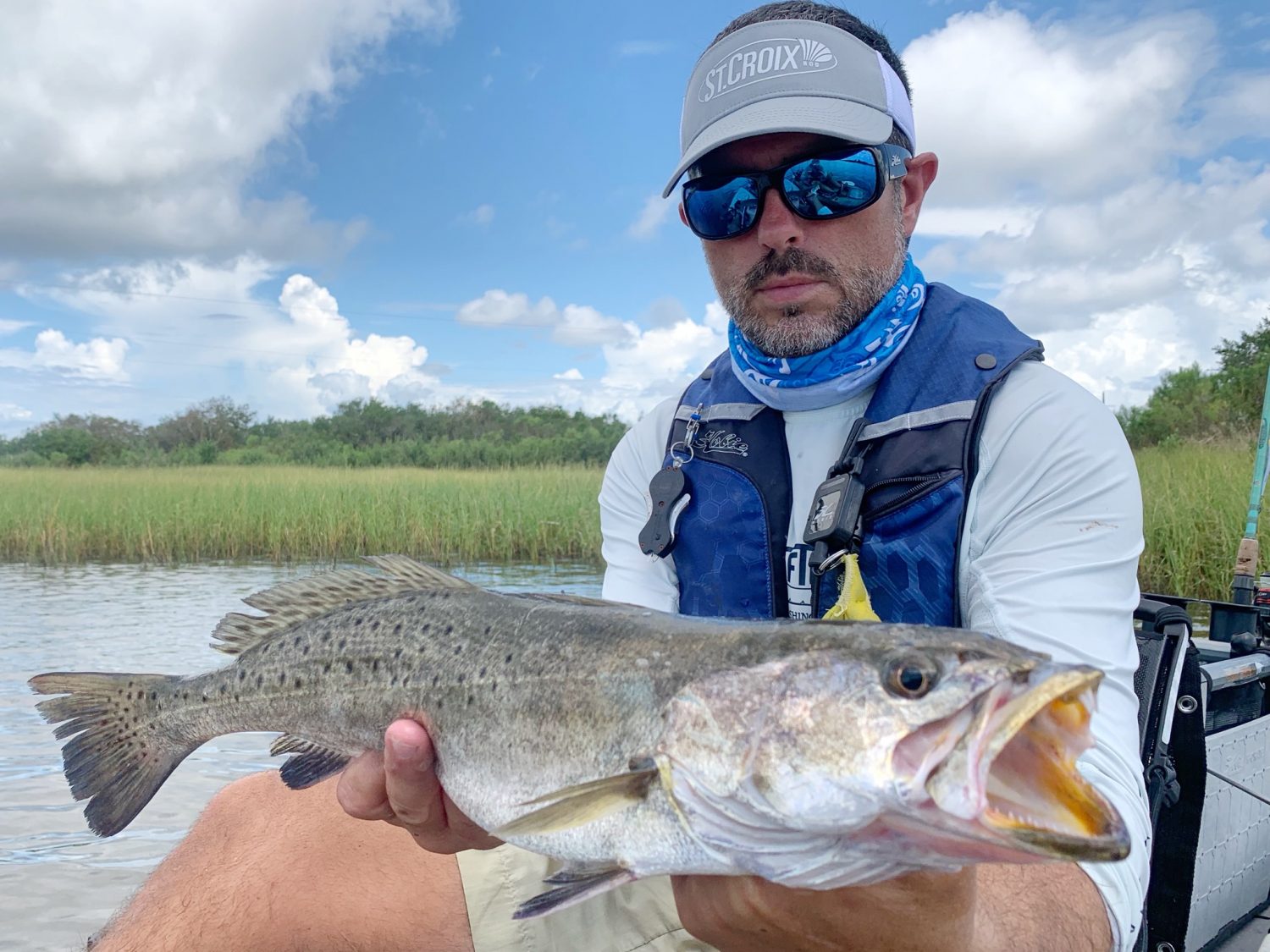 Remember while fishing from a kayak to always think safety. We are low to the water and not always easily seen. Keep a 360 degree light on at dark and low light conditions, wear a PFD, keep hydrated, and let someone know your float plan.