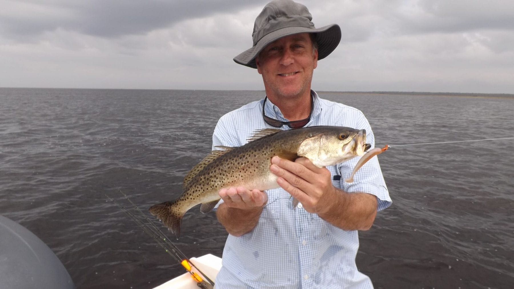 #1 Scott Davis with a nice 19” trout landed on an Elite Shiner under an Original Cajun Thunder.