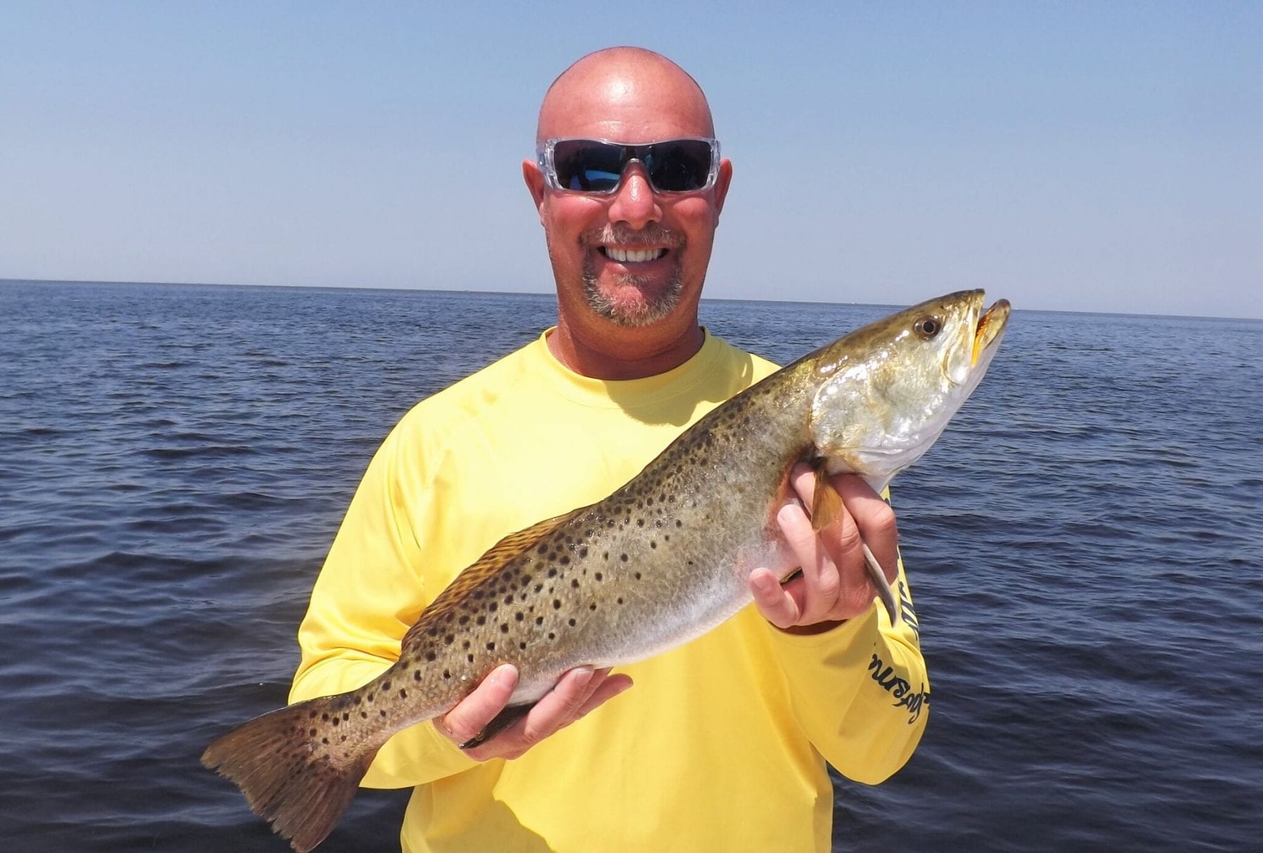 Trout should continue to migrate out from the shallower 3 to 4 ft. flats, to the deeper areas, as the water continues to heat up in July. We fished in 84 to 85 degrees this week. (Today is June 10.) I would expect to find the larger trout on, or near the breaks, where the deeper troughs feed to deep flats. Fish days when the tides are stronger; that means a greater range of tide (difference between high and low or low and high tides) which translates to more oxygen for the fish to utilize which both provides and extends the feed periods. 6 to 7 feet, and perhaps deeper this year, would be my target depth in July for trout.