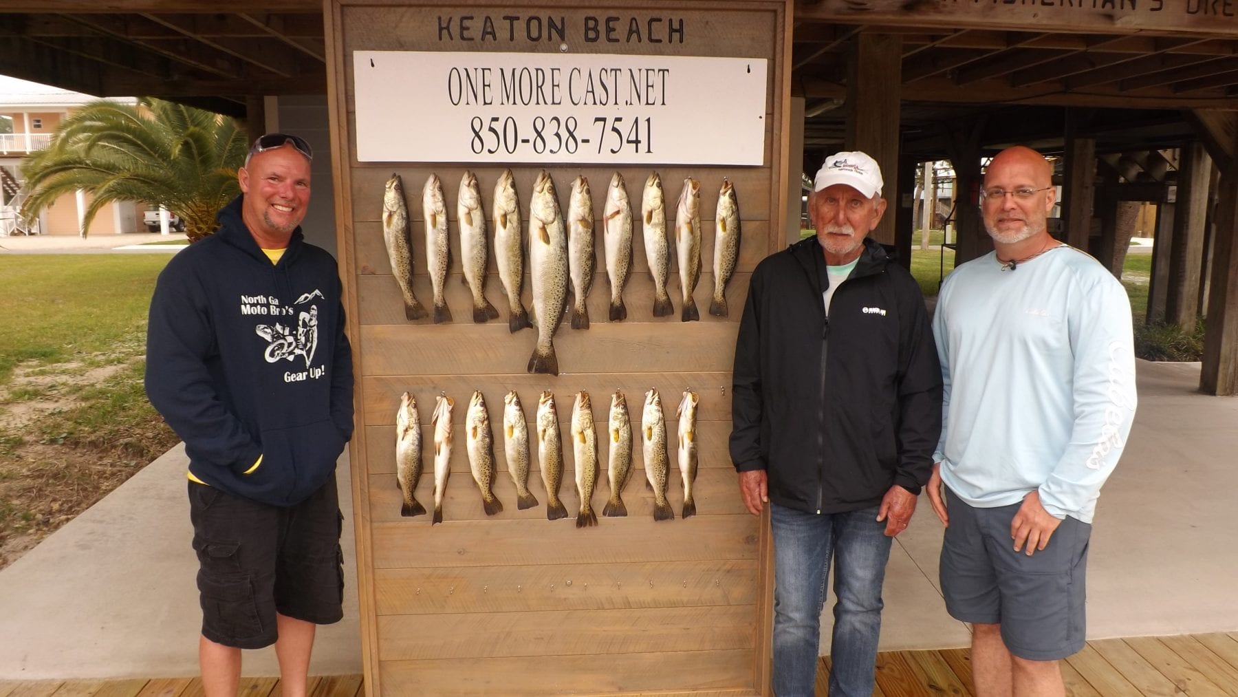 #1 Steven, Matt Williams and Steven Jr., with a fine board of trout April 6th
