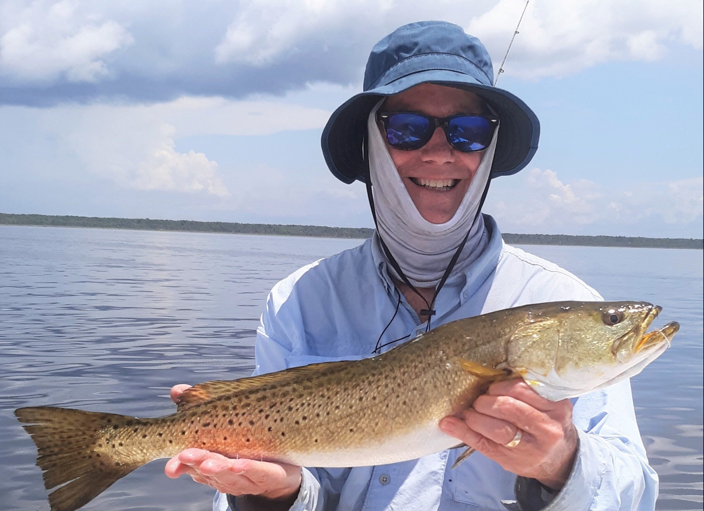 Trout have slowed somewhat but we are still catching some fine fish  (had a 25” trout for Phillip Newman of Dothan, Ala. this past Saturday) and some nice reds along with them.